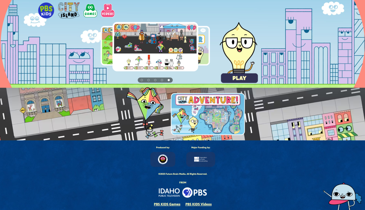 Together, these games provide opportunities for kids to step into the world of City Island and make it their own, promoting the series' core mission of encouraging kids to participate in and improve their local communities. From creating characters to exploring the city, each experience was designed to empower kids to play and interact!